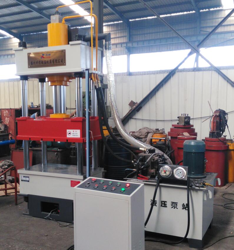 3.1 100噸油壓機(四柱液壓機)機身采用三梁四柱式結(jié)構(gòu):它由上橫梁、滑塊、工作臺、立柱、主缸、液壓動力系統(tǒng)及電器