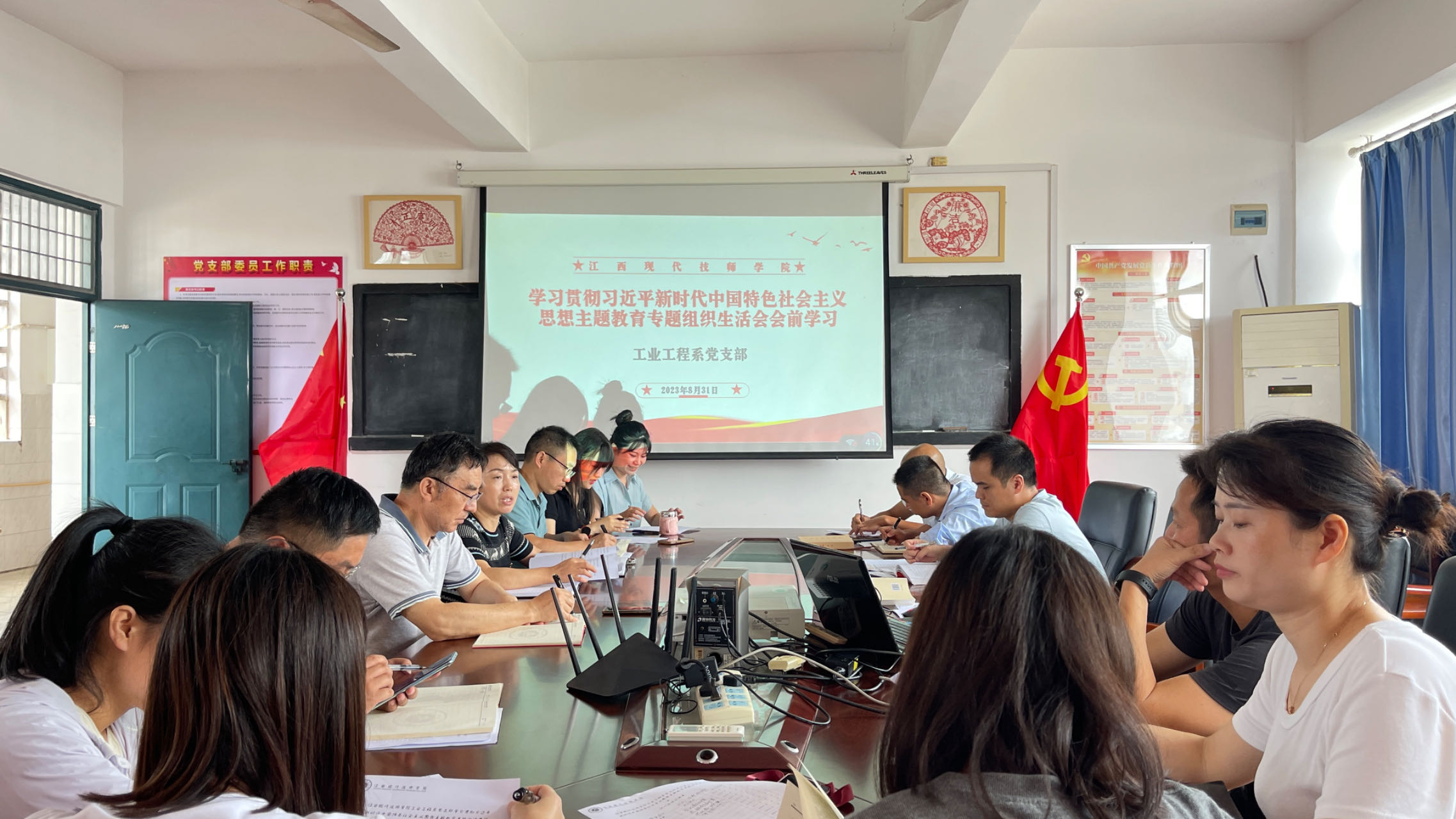 為開好學習貫徹習近平新時代中國特色社會主義思想主題教育專題組織生活會,2023年8月31日,工業工程系黨支部在開展了學習貫徹習近平新時代中國特色社會主義思想主題教育專題組織生活會會前學習。通過學習達到統一思想,凝聚共識,為開好專題組織生活會打下扎實的基礎。