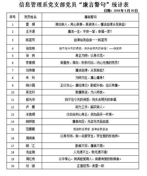 信息管理系黨支部開展“敢擔當、修言行、強作風” 反腐倡廉宣傳系列活動總結