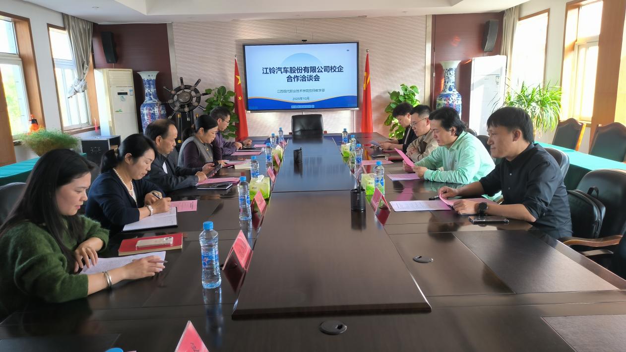 為助力人才培養與產業需求精準對接,推動校企合作走深走實,10月31日,江鈴汽車股份有限公司人事經理李鵬、培訓經理鄭云、招聘經理胡昊、人事主管羅利華一行蒞臨我校青山湖校區,與技師教學部共同召開“江鈴汽車現代訂單班”校企合作洽談會。技師教學部牽頭負責人劉秋生、黨建及學生工作負責人雷娟等參會,會議由招生就業與實訓服務科魏斯群主持。