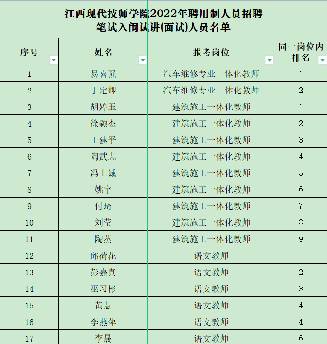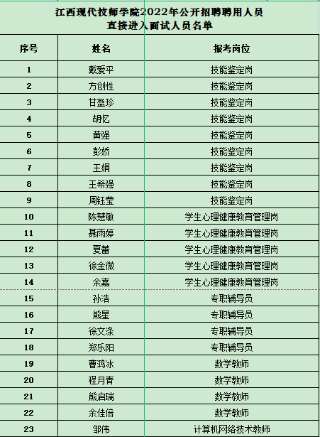 江西現(xiàn)代技師學(xué)院2022年聘用制人員招聘筆試通過進(jìn)入試講(面試)人員名單及相關(guān)事項(xiàng)的通知